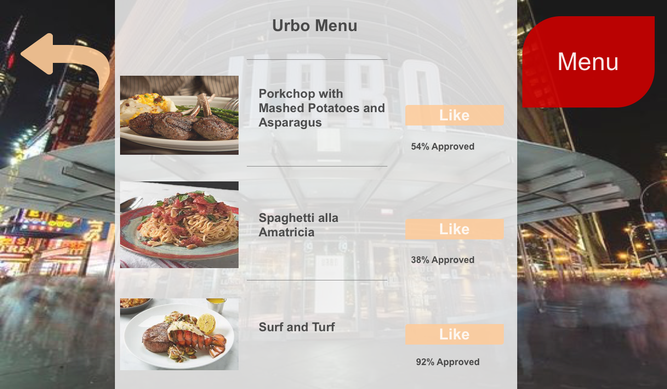 Menu with images and user ratings for each dish
